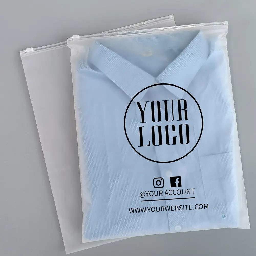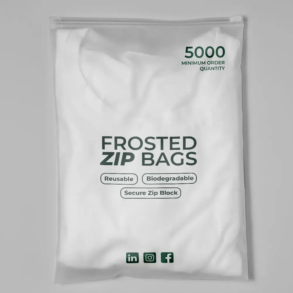 No branding concept can be practical without a crystal-clear print and design option. It is also vital to give your target audience a clear understanding of your brand and product dynamics. With our high-end printing setup, we make all that possible. Our Frosted Bags protect your garments from external factors and reinforce your brand identity. Though the semi-transparent texture is enough to bestow a stylish look, the logo and other branding elements would double all that impact. We have several color and finishing options; black is the most recommended. It will elevate your typography and enhance the look and feel of the custom design. We give you complete freedom to interact with our design team. Bring any color change or style alteration that will boost your branding impact. Moreover, buying these in bulk will help you maintain uniformity in packaging, which is essential for companies that need the same sort of solutions every time for branding and enhanced customer experience. It will also save you from the hassle of placing the order repeatedly. These are cost-effective options with the best return for your money.
